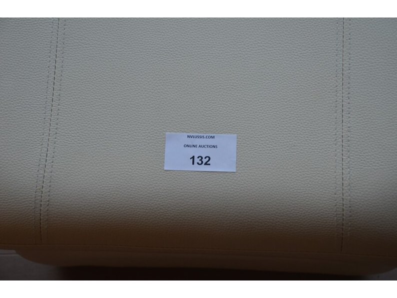 Opazetel, beige lederen poef, 2 ronde bijzettafeltjes