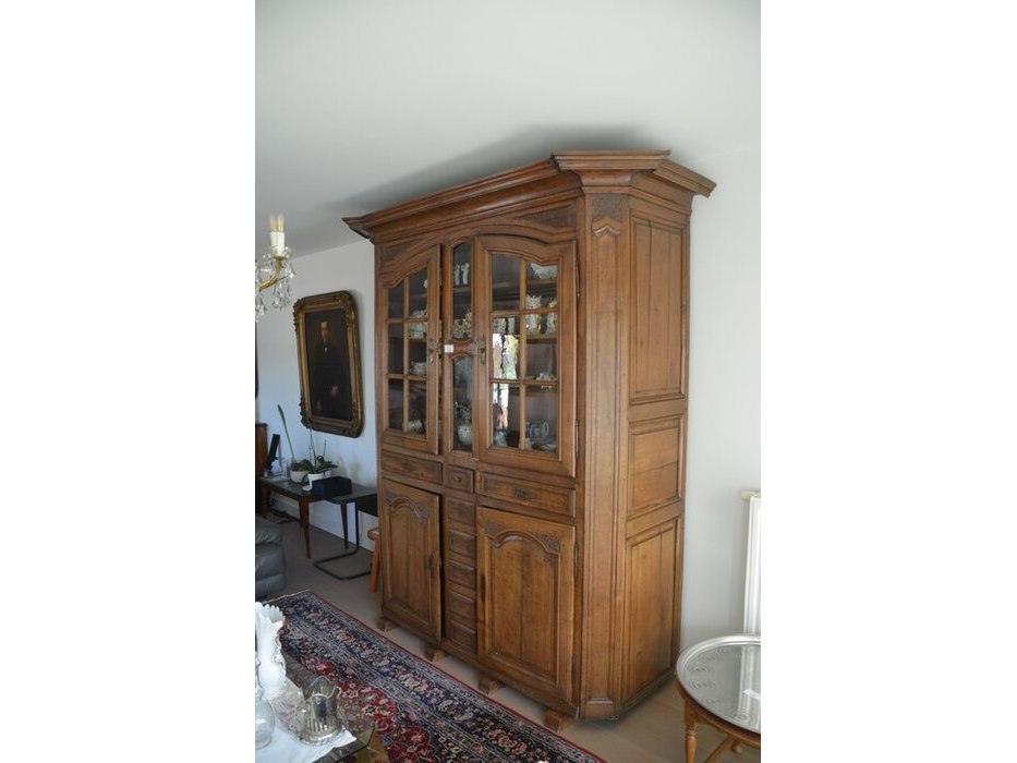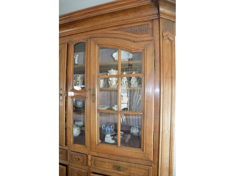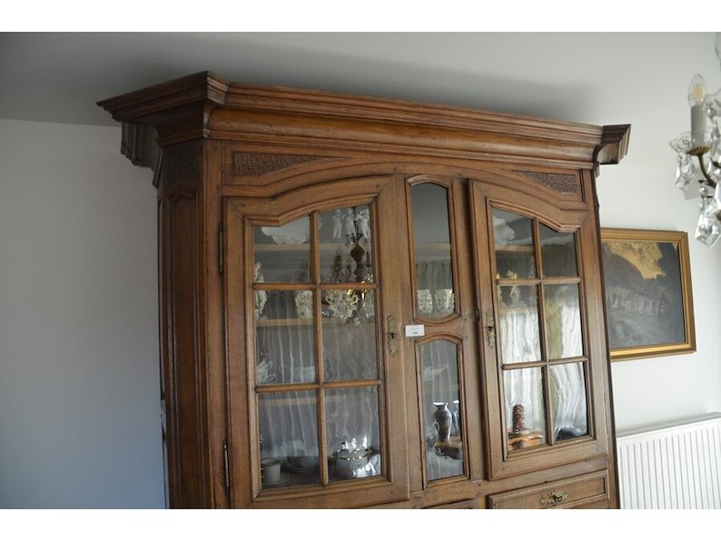 Antiek eiken kast met 2 deuren en 3 laden met opzet vitrine 2 deuren