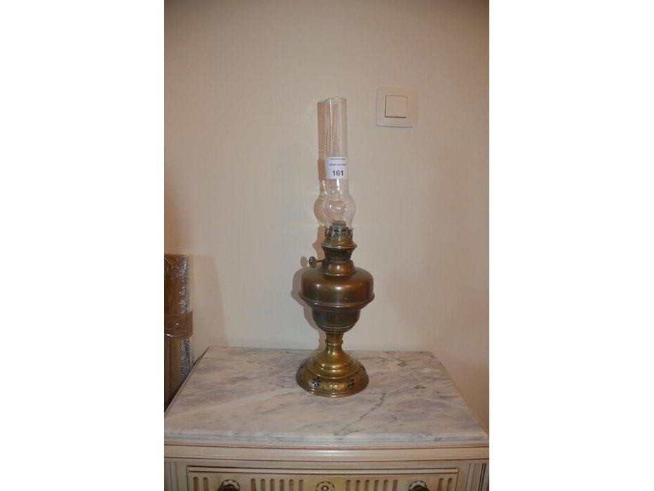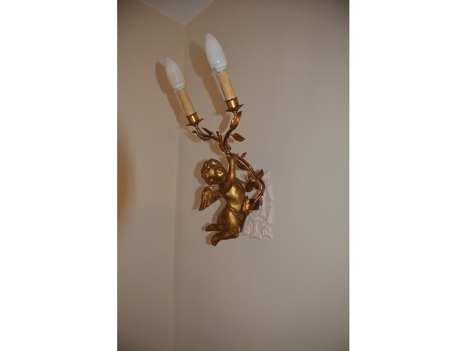 Koperen petroleum lamp, 2 koperkleurige wandlichten "engeltjes"