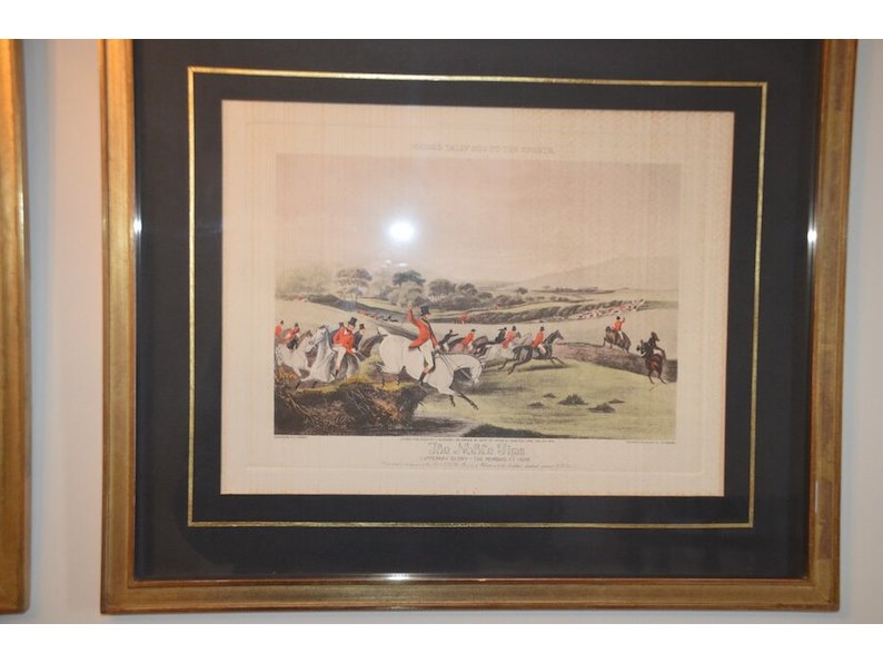 Schilderij, 2 jachttaferelen achter glas