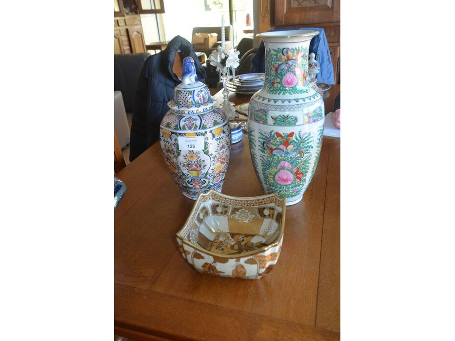 Chinese vaas, chinese kom, pot met deksel (alles porselein)