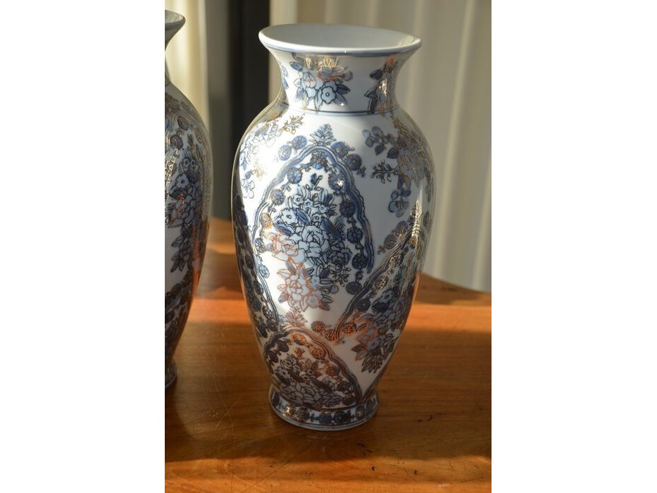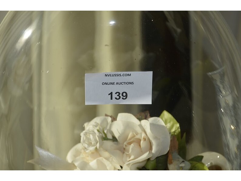2 bloemstukken onder stolp, 2 porseleinen vazen, glazen drinkset met karaf
