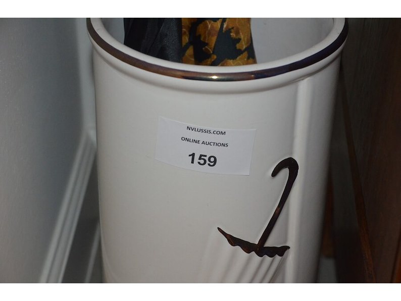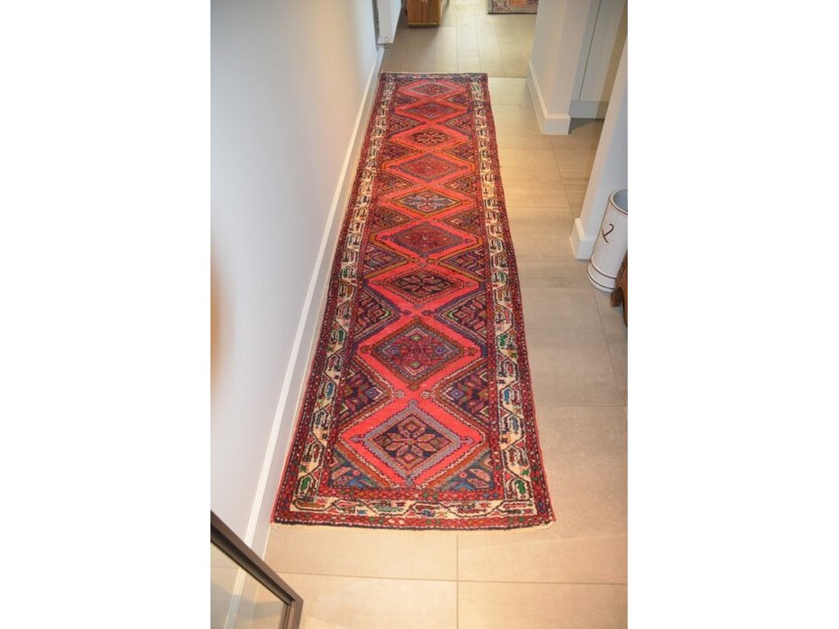 Oosterse loper ca. 3 m, smeedijzeren kapstok, porseleinen paraplubak