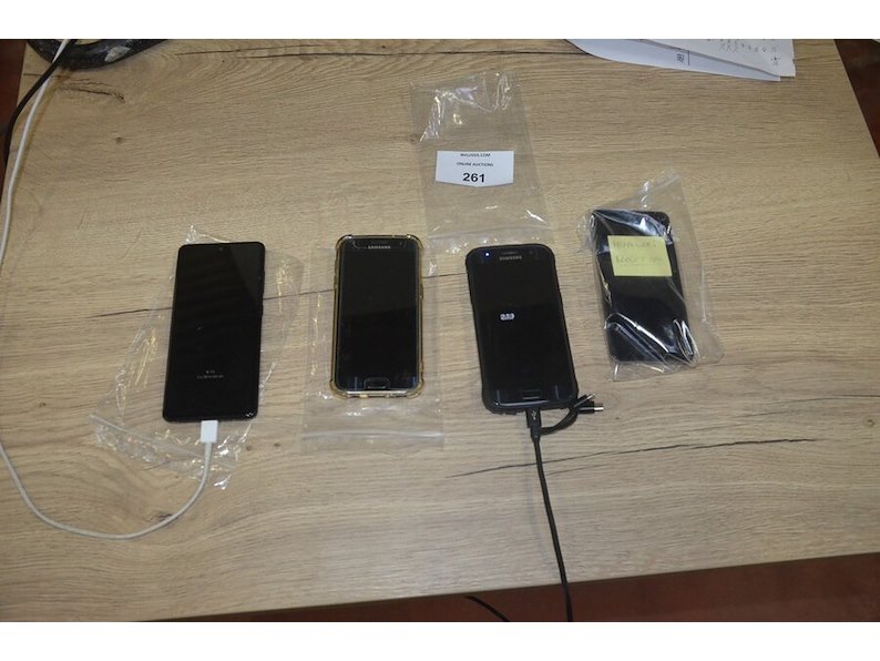 Smartphone huawei y6/mya-l41, 2 smartphones samsung galaxy s7 32 gb, smartphone samsung galaxy a51 met barst in scherm, allen zonder lader (b401)