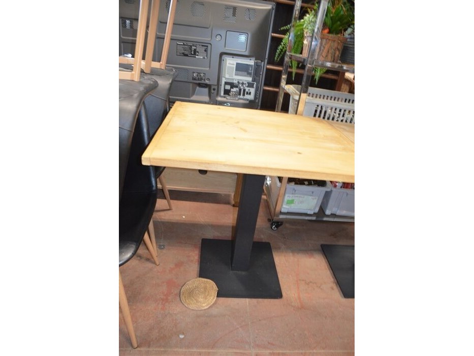 10 vierkantige tafels houten blad zwart metalen voet, 11 moderne zwart lederen stoelen, partij kussens