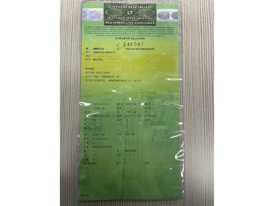 Bestelwagen renault master met zeil en slaapcabine,ch.nr. vf1vbu4f248646901, bj. 17-01-2017(litouwse nummerplaat)