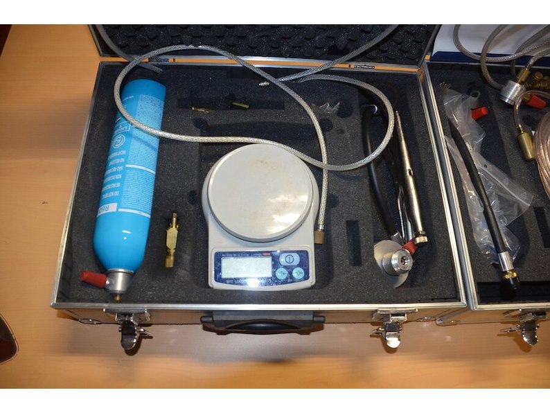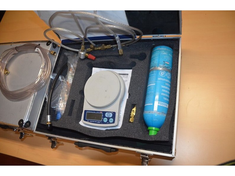 2 alu koffers met koelvloeistof koelkast en digitale weegschaal (b425)