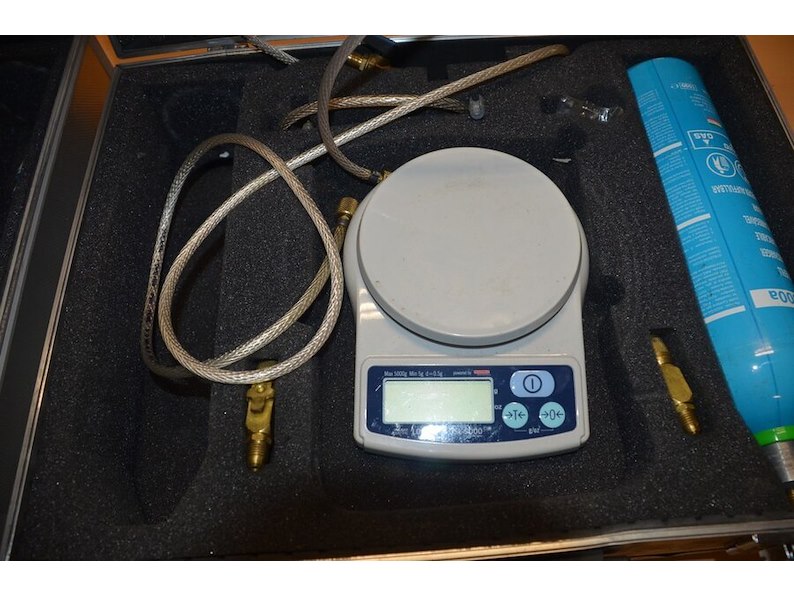 2 alu koffers met koelvloeistof koelkast en digitale weegschaal (b425)