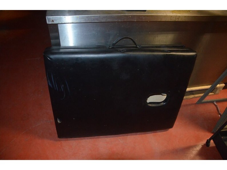 Zwart opvouwbare massagetafel, ronde kruk op wielen, rechthoekige spiegel, metalen rolrek, rekje zwart 3 etages (1,2,3,15,16)