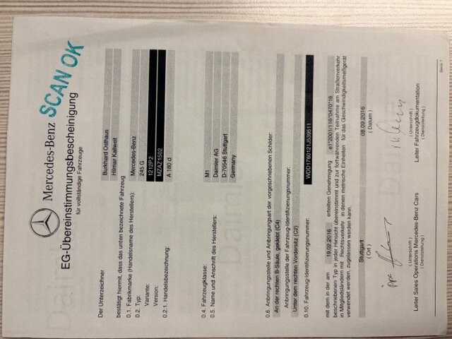 Stationwagen mercedes benz a 180d, type: 245g, variant: 1212p2, versie: mzaz1502, chassisnummer: wdd1760121j539511, bouwjaar: 18/10/2016, met inschrijvingsbewijs deel i, gelijkvormigheidsattest en 2 sleutels.