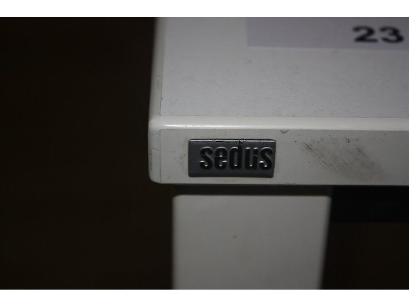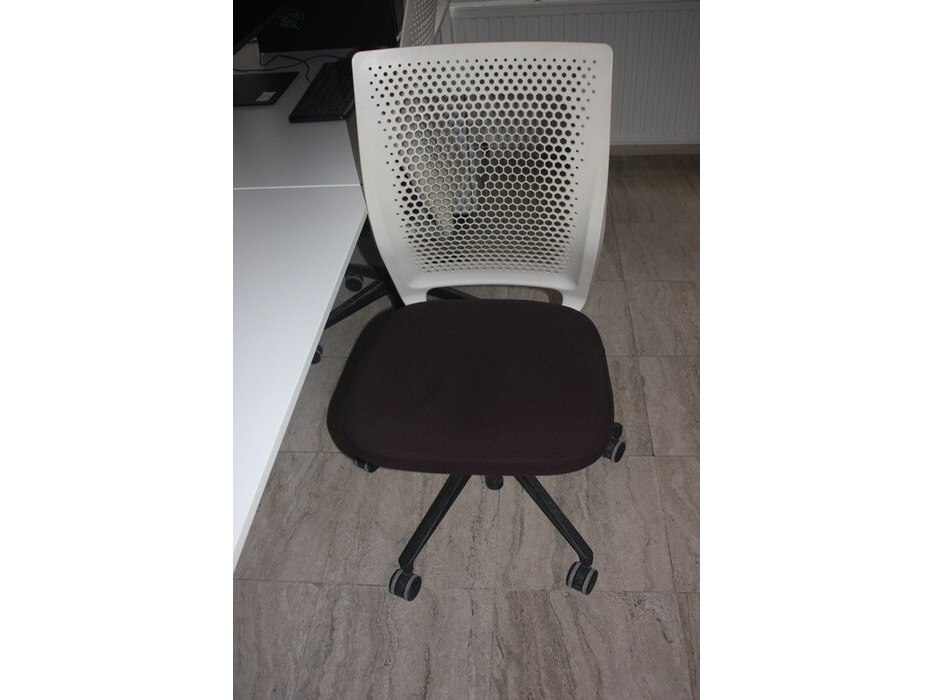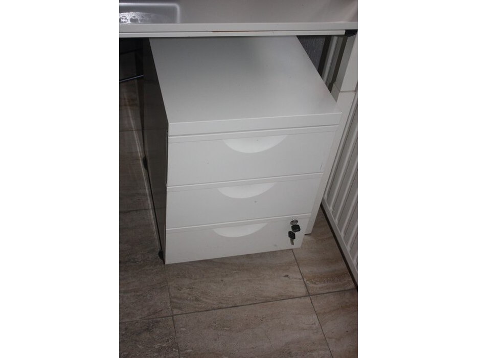 2 wit metalen rol ladeblokken, office bench sedus 4 personen 320x160 cm, 3 rolbureelstoelen met stoffen zit en pvc rug (54,57,58)