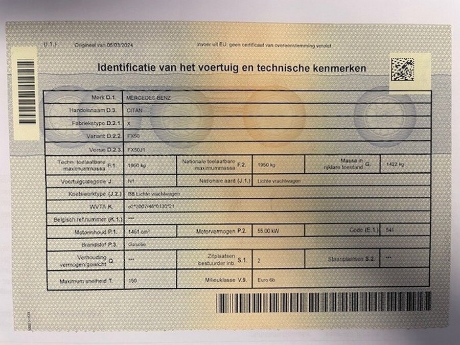 Lichte vrachtwagen mercedes citan, type x, variant fx50, versie fw50j1, ch.nr. wdf4156031u23249, bouwjaar 02-03-2018 (sleutel, boorddocumenten: inschrijvingsbewijs deel i) (1)