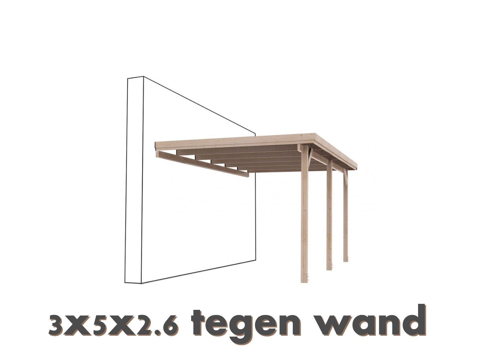 1x Overkapping/carport een zijde tegen de muur met een doorrijhoogte van 260 cm ,type plat dak,afmeting lxbxh 500x300x260,materiaal grenen geimpregneerd bevestigingsmateriaal verzinkt,staanders 9x9 cm,dakplaten niet aanwezig,dakbalken ja,montagemateriaal en montagehandleiding bijgeleverd,gewicht ca 70 kg afmeting ngebonden bouwpakket lxbxh 304x50x50cm,exclusief paalvoet zie elders op veiling. Staat: Nieuw Verzendgewicht: Deze kavel kan niet worden verzonden!