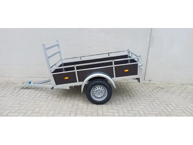 Aanhangwagen ongeremd,merk syma type BE201175,houten bak,stalen spatborden,200x110 cm,750kg,1 as. Staat: Nieuw Verzendgewicht: Deze kavel kan niet worden verzonden!