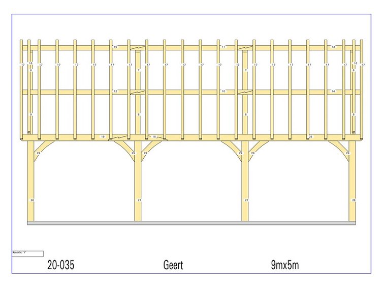 Product: Carport Materiaal: Fijnspar Afmeting: 5000 x 9000 x 4970 mm Specificaties: Palen : 180x180 mm Liggers :180x180 mm Nok : 130x130 mm Dakspant : 130x130 mm Gording : 130 x 130 mm Schuine stekers : 60x180 mm Kepers : 70x80 mm Pakket afmetingen : circa 5000 x 1200 x 1000 mm Gewicht : circa 1750 kg