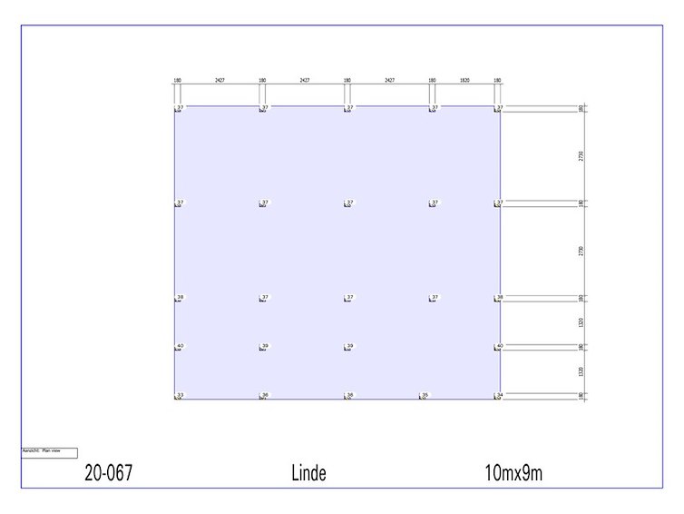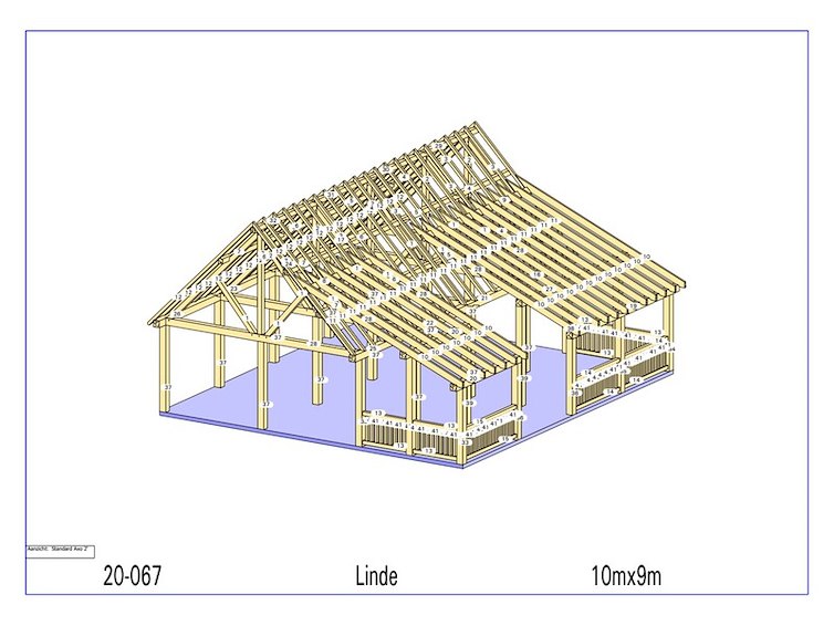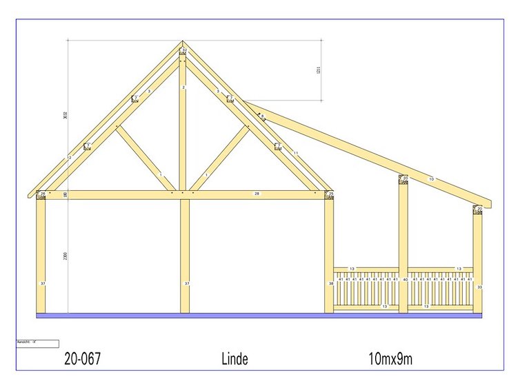 Product: Chalet Materiaal: Fijnspar Afmeting: 9000 x 10000 x 5551 mm Specificaties: Palen : 180x180 mm Liggers :180x180 mm Nok 130 x 130 mm Gordingen : 130 x 130 mm Dakspant : 130 x 130 mm Pakket afmeting : circa 6400x1200x2000 mm Gewicht pakket : circa 3500 kg