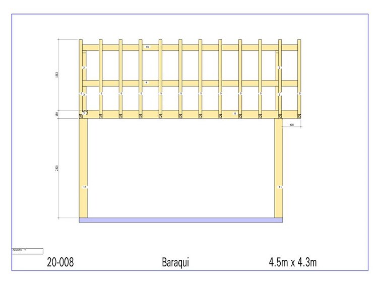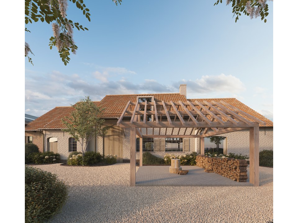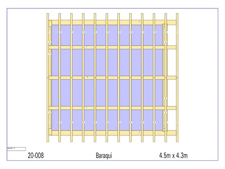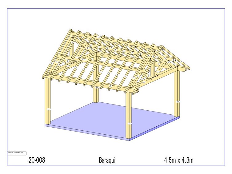 Product: Overkapping Materiaal: Douglas Afmeting: 4500 x 4300 x 3950 mm Specificaties: Palen : 180x180 mm Liggers :180x180 mm Nok : 130x130 mm Dakspant : 130x130 mm Gording : 130x130 mm Kepers : 70x80 mm Pakket afmetingen : circa 5000 x 1200 x 500 mm Gewicht : circa 800 kg