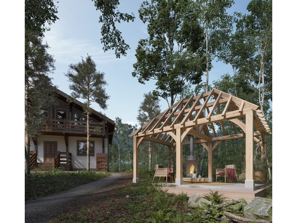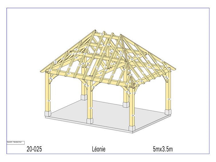 Product: Prieel Materiaal: Douglas Afmeting: 5000 x 3500 x 3960mm Specificaties: Palen : 180x180 mm Liggers :180x180 mm Nok : 130x130 mm Schuine stekers : 60x180 mm Kepers : 70x80 mm Pakket afmetingen : circa 5000 x 1200 x 650 mm Gewicht : circa 800 kg