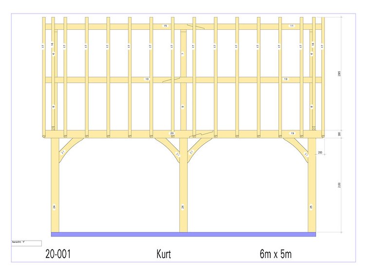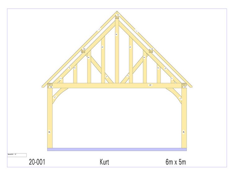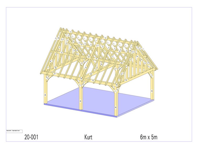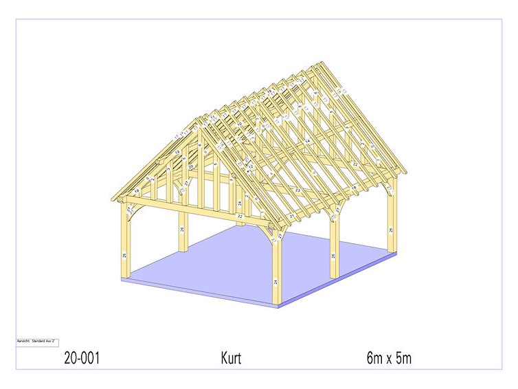 Product: Carport Materiaal: Euro eiken Afmeting: 5000 x 6000 x 4910 mm Specificaties: Palen : 180x180 mm Liggers :180x180 mm Nok : 130x130 mm Dakspant : 130x130 mm Priem : 130x130 mm Schuine stekers : 60x180 mm Kepers : 70x80 mm Pakket afmetingen : circa 5000 x 1200 x 1000 mm Gewicht : circa 2500 kg