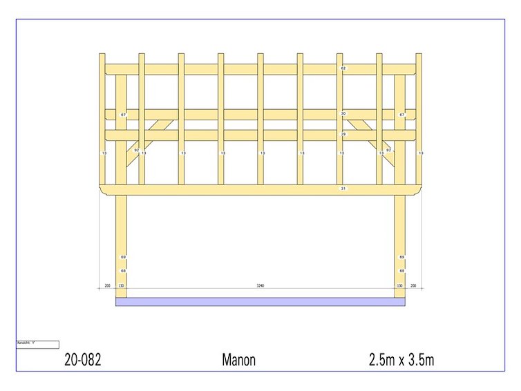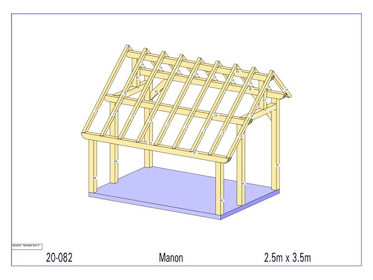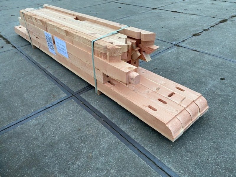 Product: Overkapping Materiaal: Euro eiken Afmeting: 3500 x 2500 x 2955 mm Specificaties: Palen : 130x130 mm Liggers :130x130 mm Nok : 130x130 mm Schuine stekers : 60x130 mm Kepers : 70x80 mm Afmetingen pakket : circa 4200 x 1200 x 750 mm Gewicht :circa 700 kg