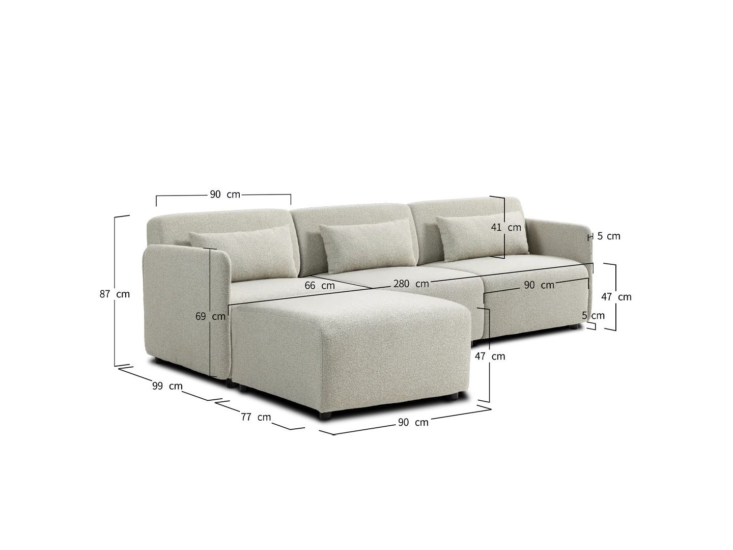3 zit in hoogwaardige beige stof met losse poef, ongeopende verpakkingen, afmetingen zie foto's