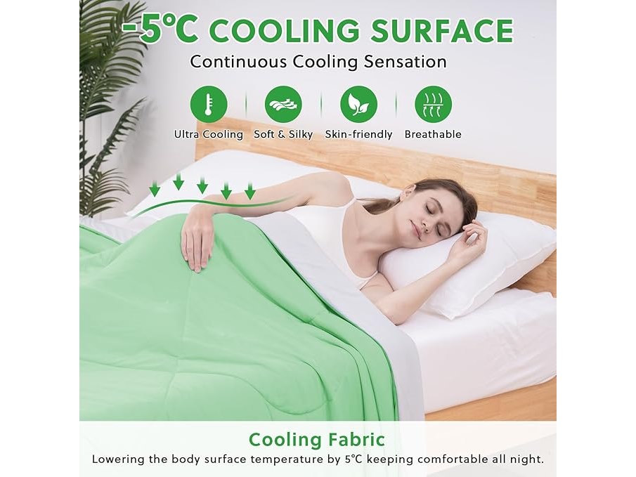 48x Ongeopend, HOMFINE Kühldecke Doppelseitig Kühlende Decke - Leichte Kühldecke für Menschen Q-Max > 0,4 Sommerdecke Kühlend Selbstkühlende Decke Sommer Decke Cooling Blanket für Bett, Grün, 200 x 220 cm B0DJ76DRB7