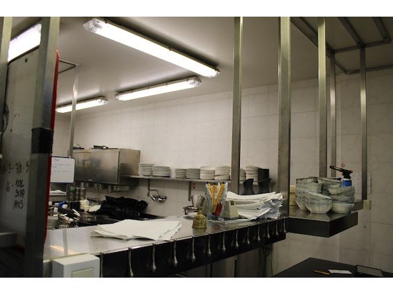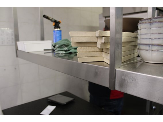 Inox ophangrek met warmhoudlampen