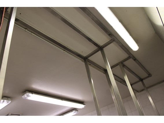 Inox ophangrek, 30diep, middenstuk 50 diep x2m70 inclusief 2 warmhoudelementen. (zonder inhoud) elektriciteit te zekeren/