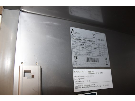 2 deuren, Topcold, buitenafmetingen breedte 1m10, diepte 68 cm, hoogte 82 cm. Gas reeds afgesloten, motor niet inbegrepen