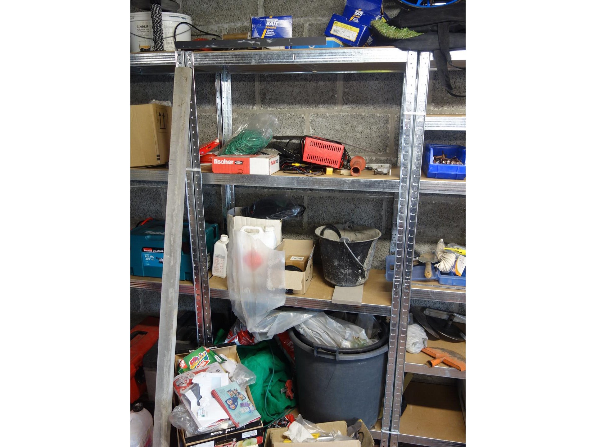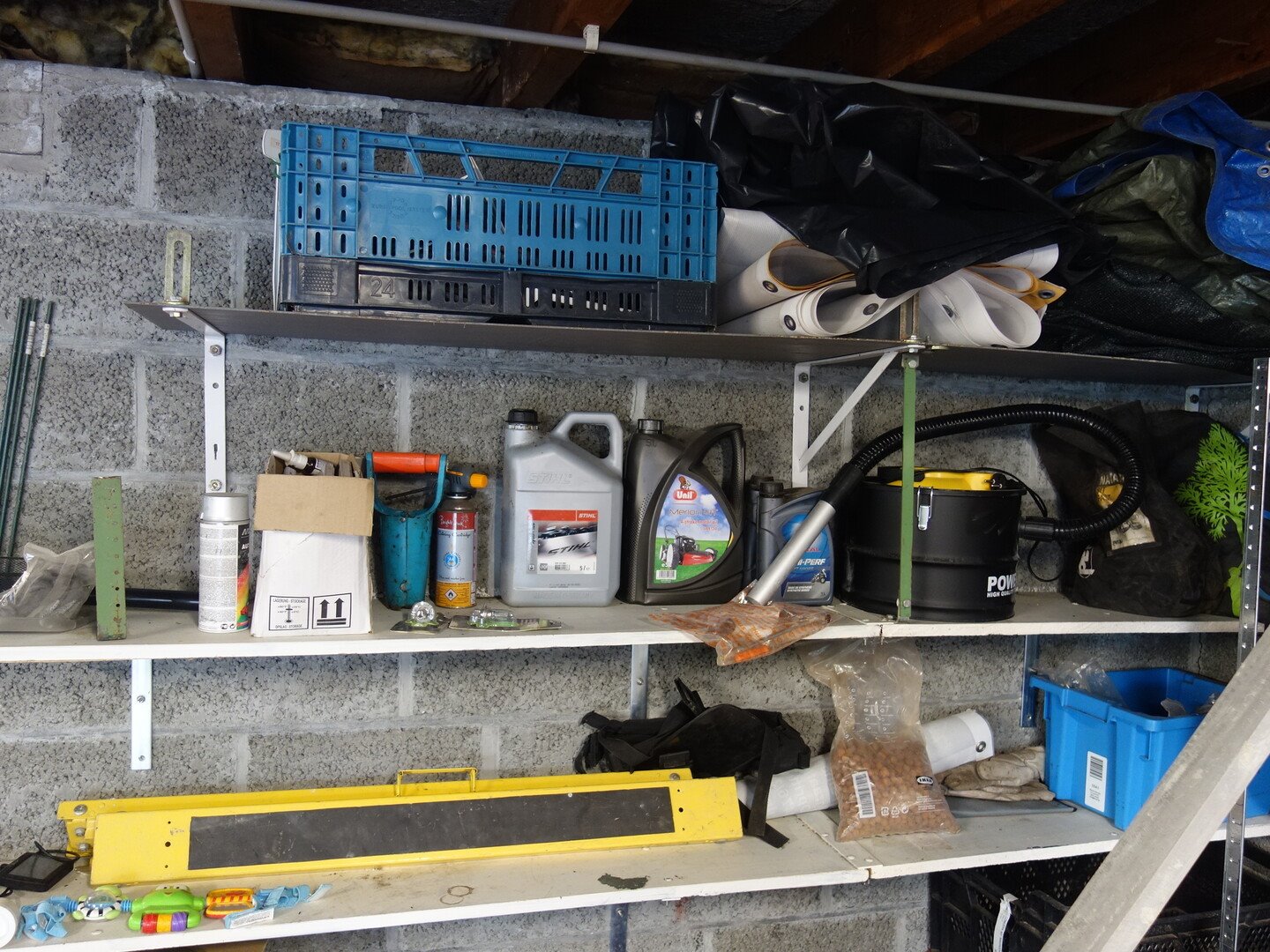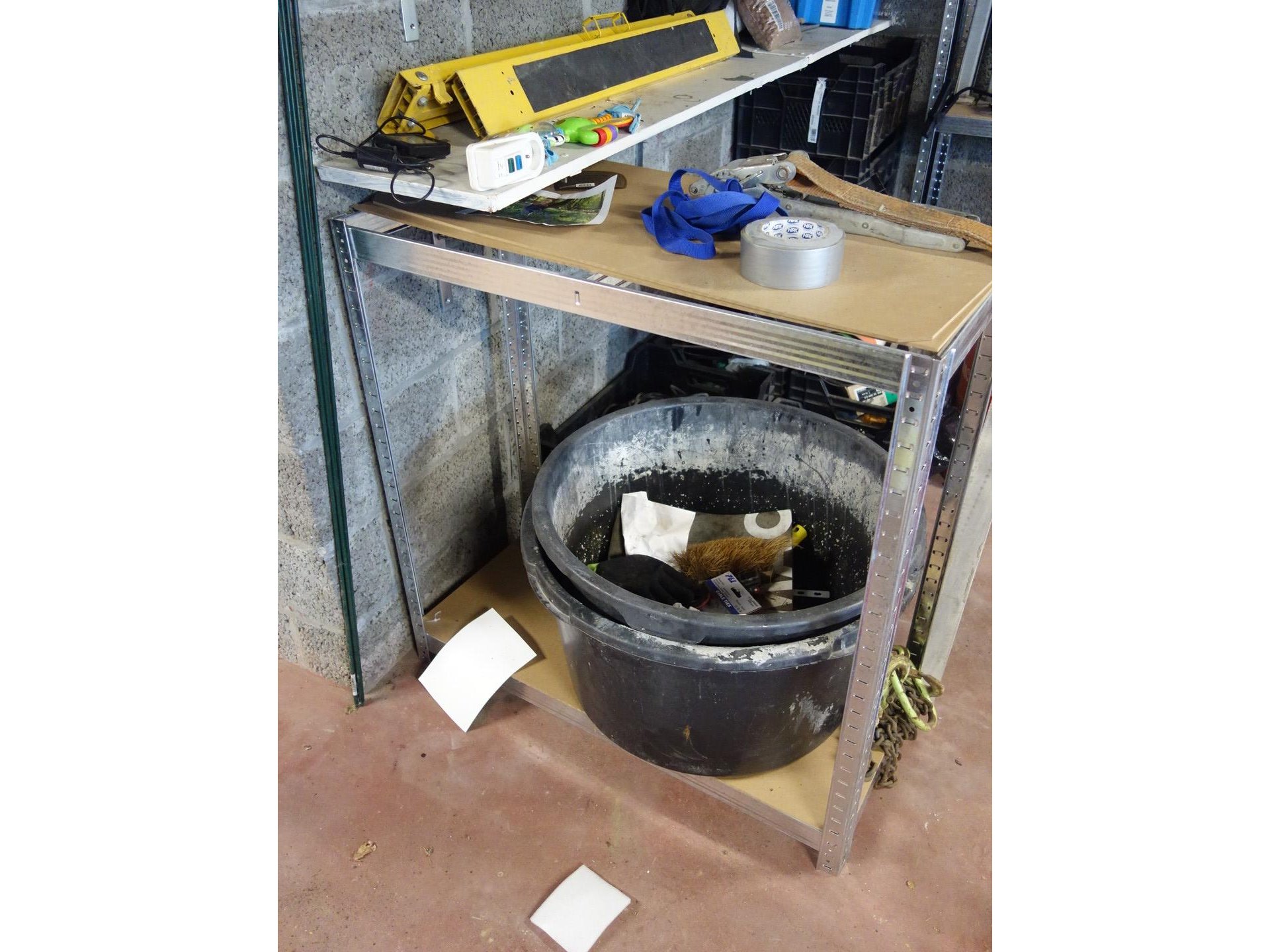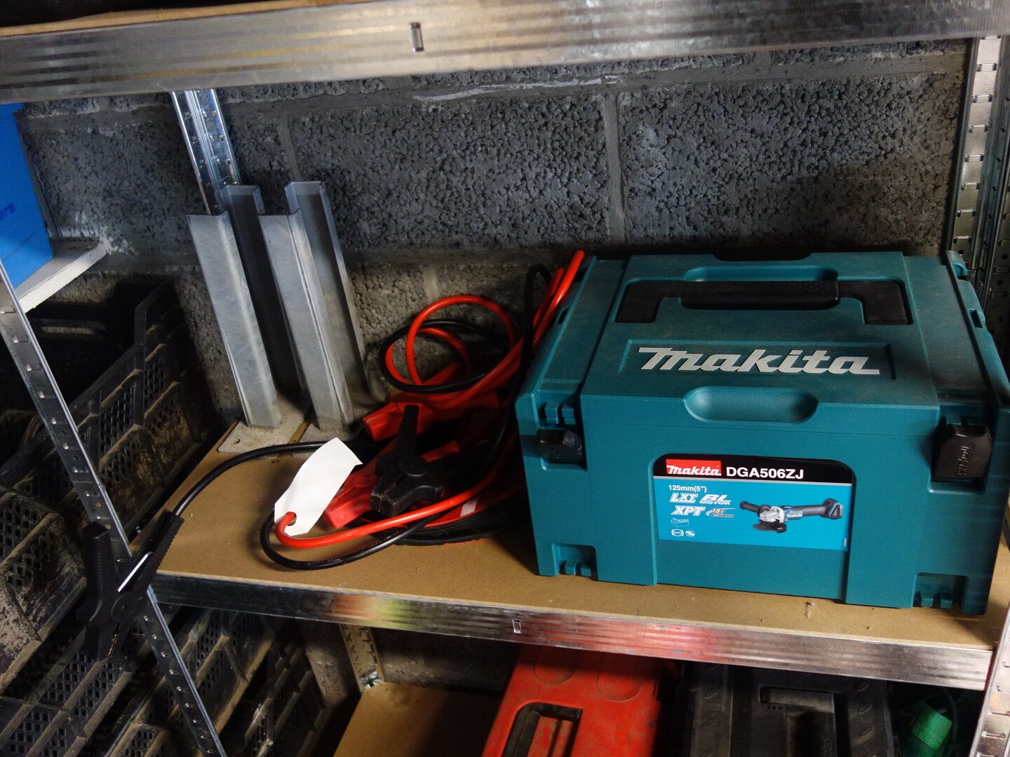 Oa: 2x lege gasflessen , batterijlader , metserkuip , werkkoffers, handgereedschap , metserkoorden, lege makita koffer, startkabels , ...