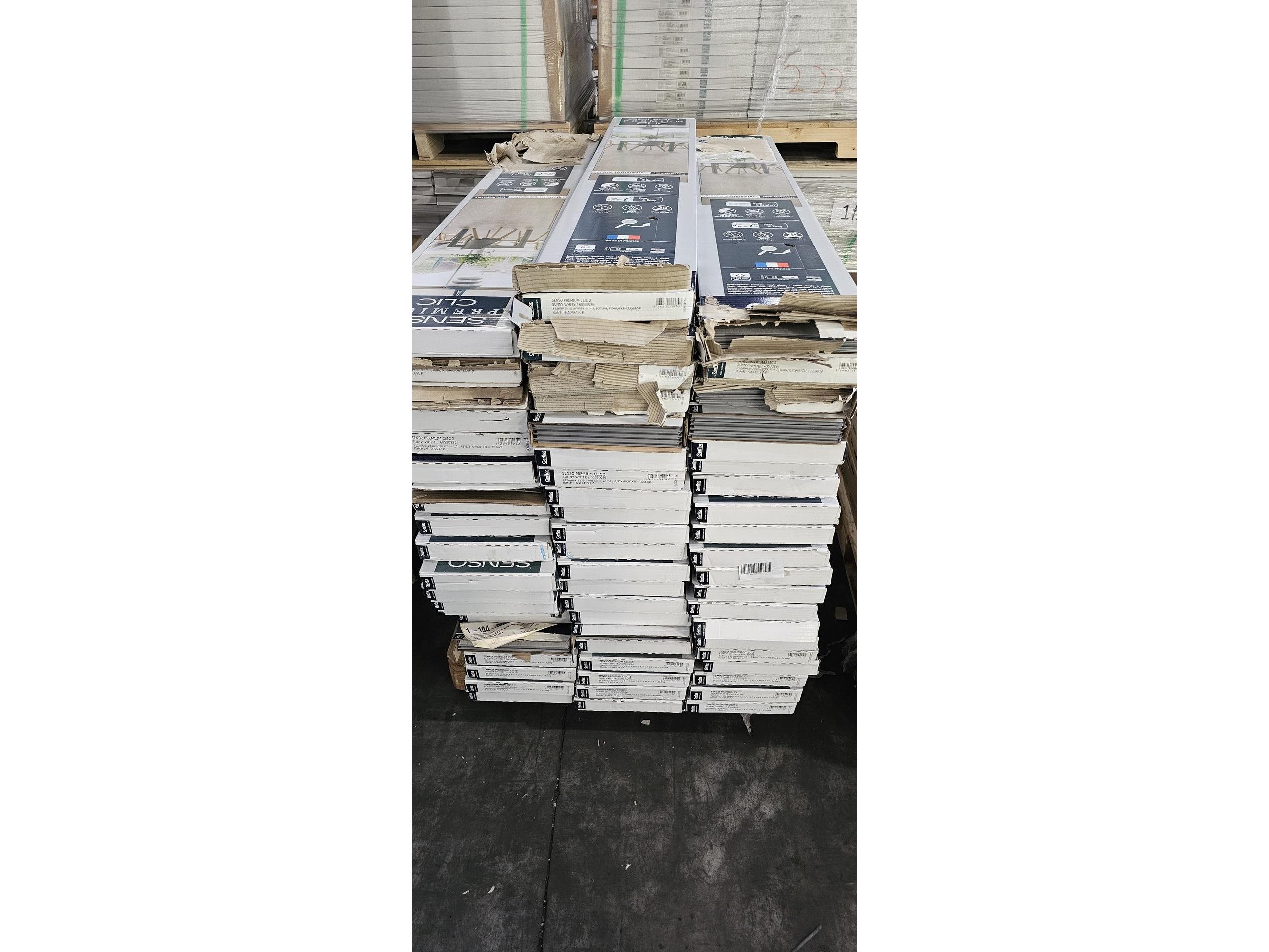 Sunny white , Afmeting : 1239 x 212 , dikte: 4.5 mm , inhoud : 2.1m² (8 planken) Vloerverwarming: Geschikt , 70 dozen 8 licht beschadigd
