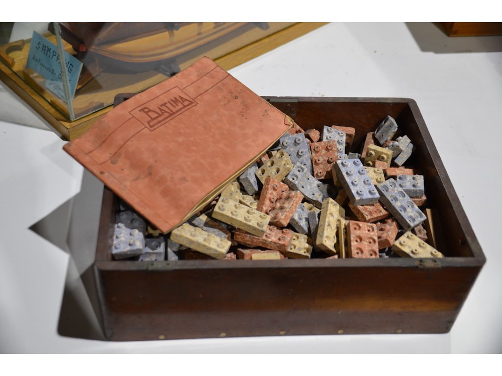 Belgische voorloper van Lego. Geproduceerd door Belgische speelgoedfabrikant Nazaire Beeusaert te Deinze. Ca. 1954. Incl. handleiding.