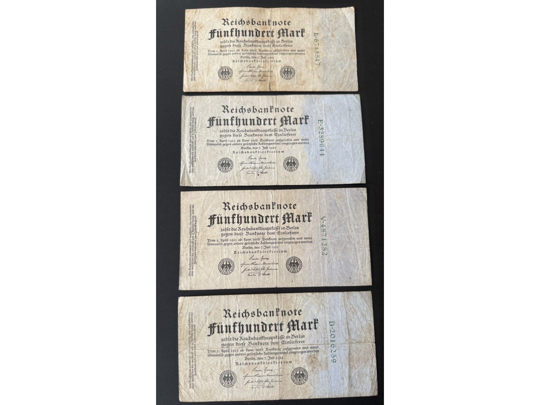 4x reichsbanknote 500 mark 1922
