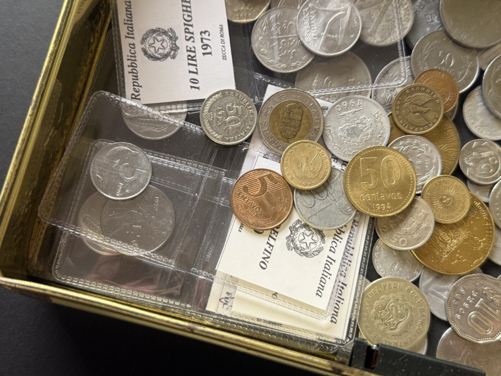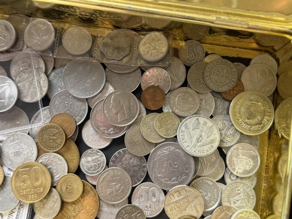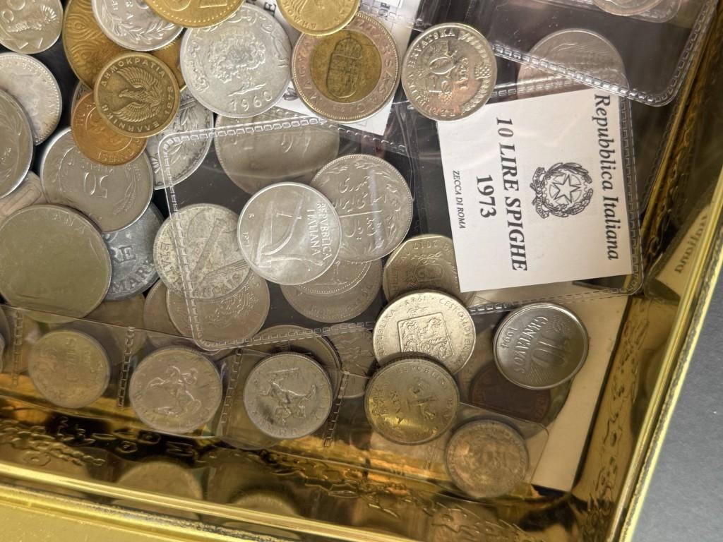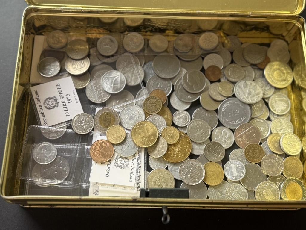 Metalen doos met diverse munten