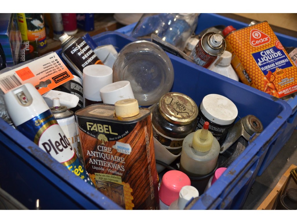 2x blauwe bak met diverse producten