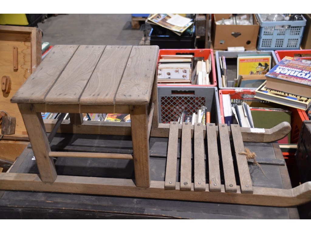 Antieke houten koffer + slede