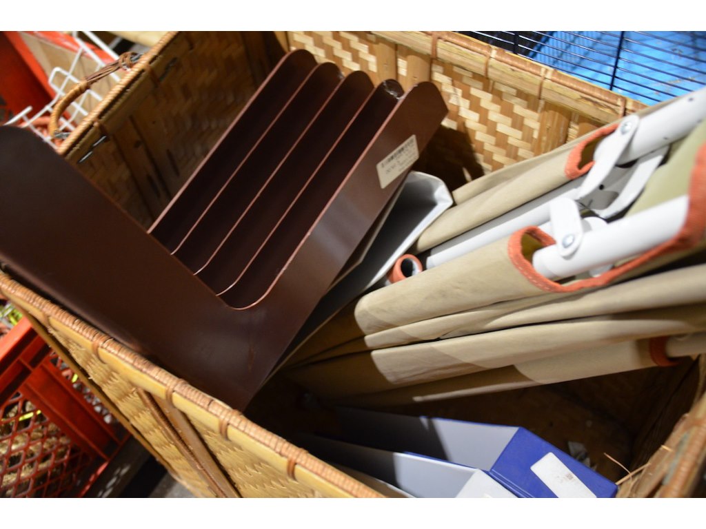 Bak + rieten mand met diverse inhoud