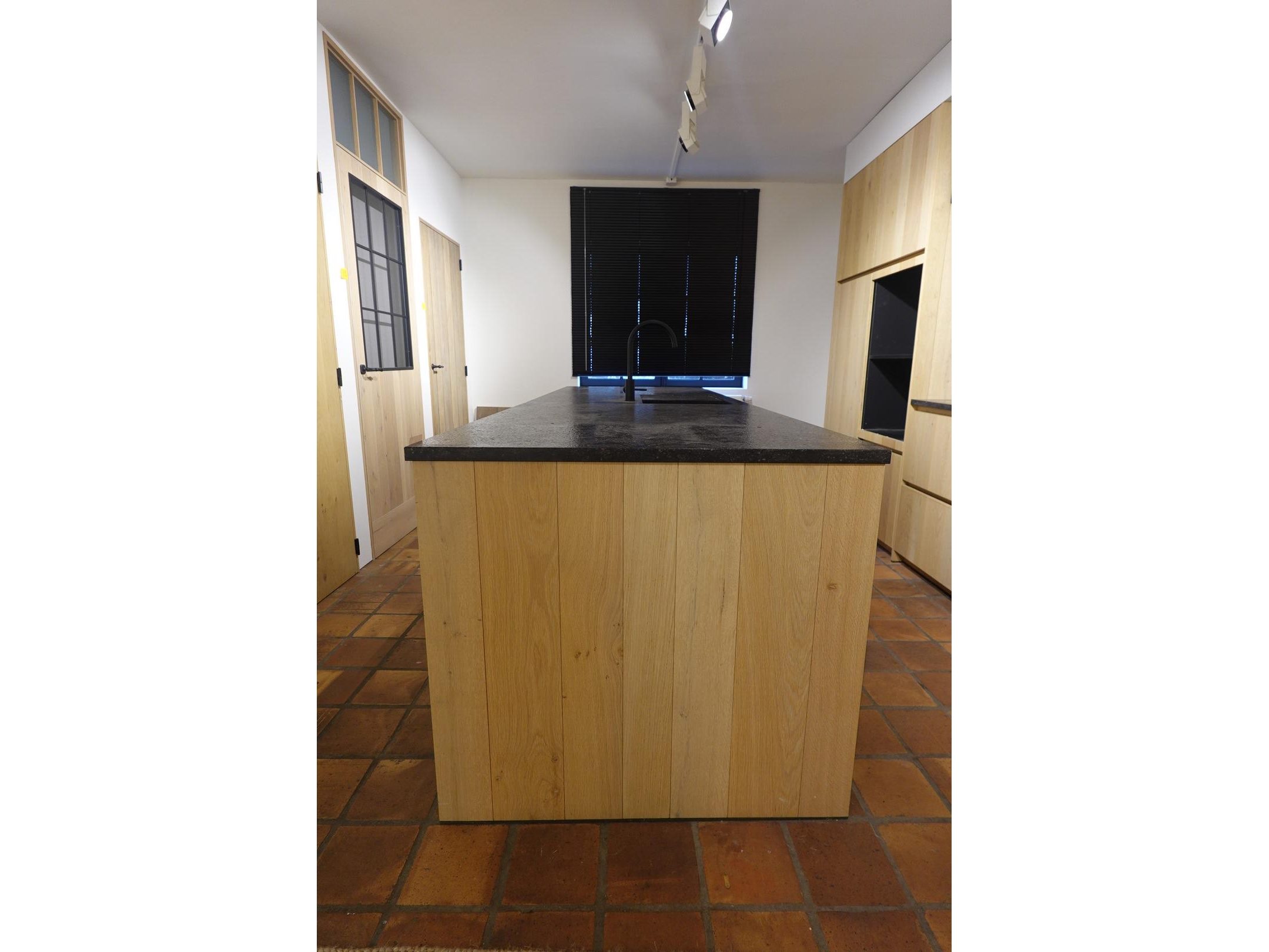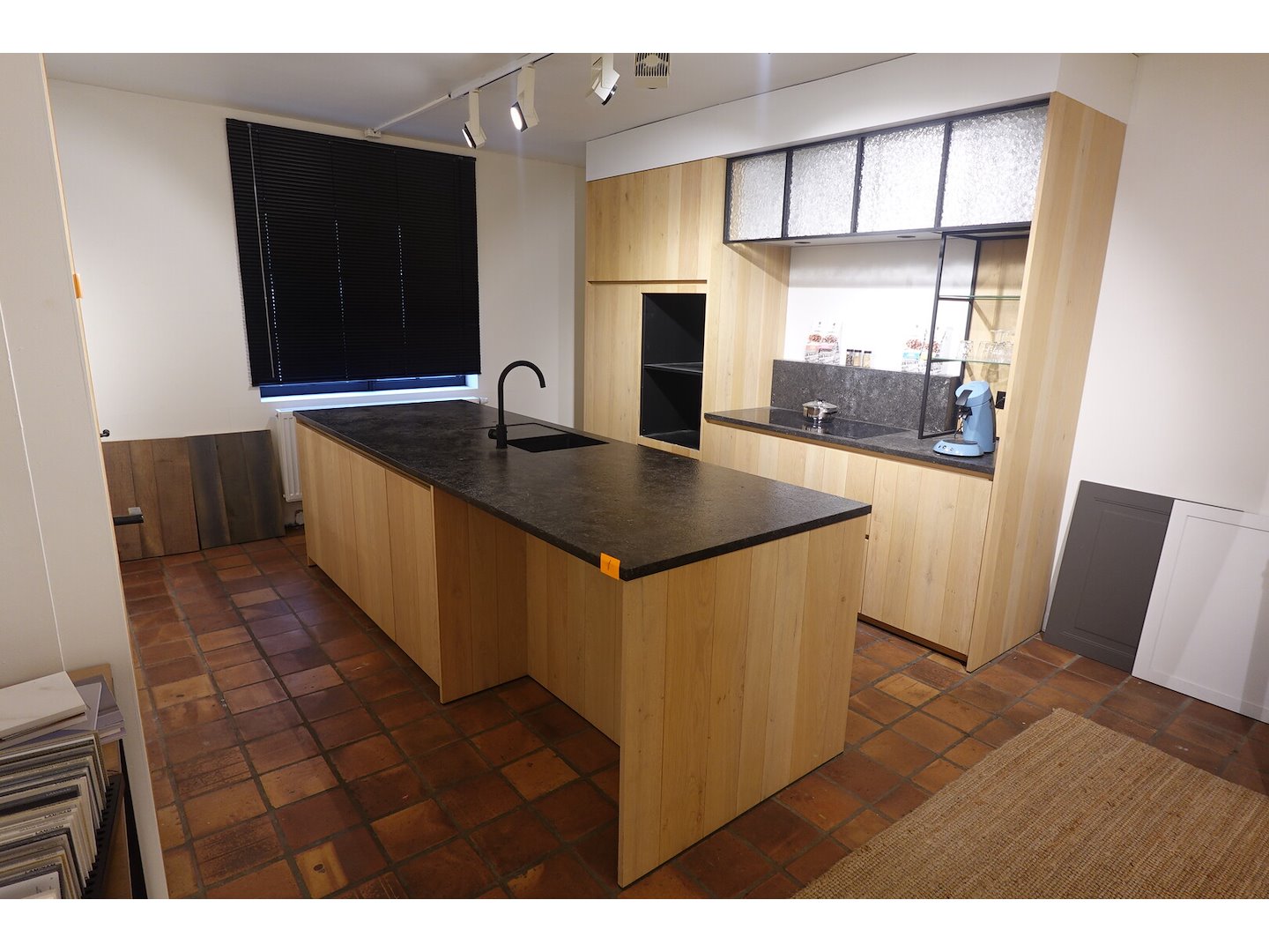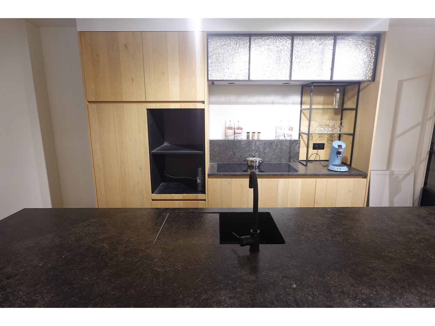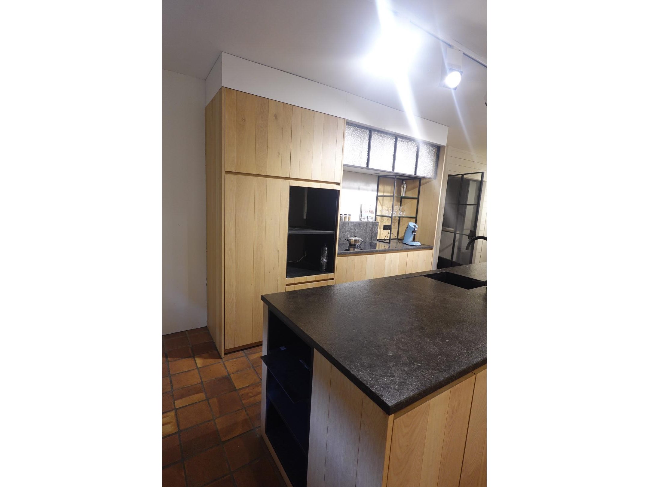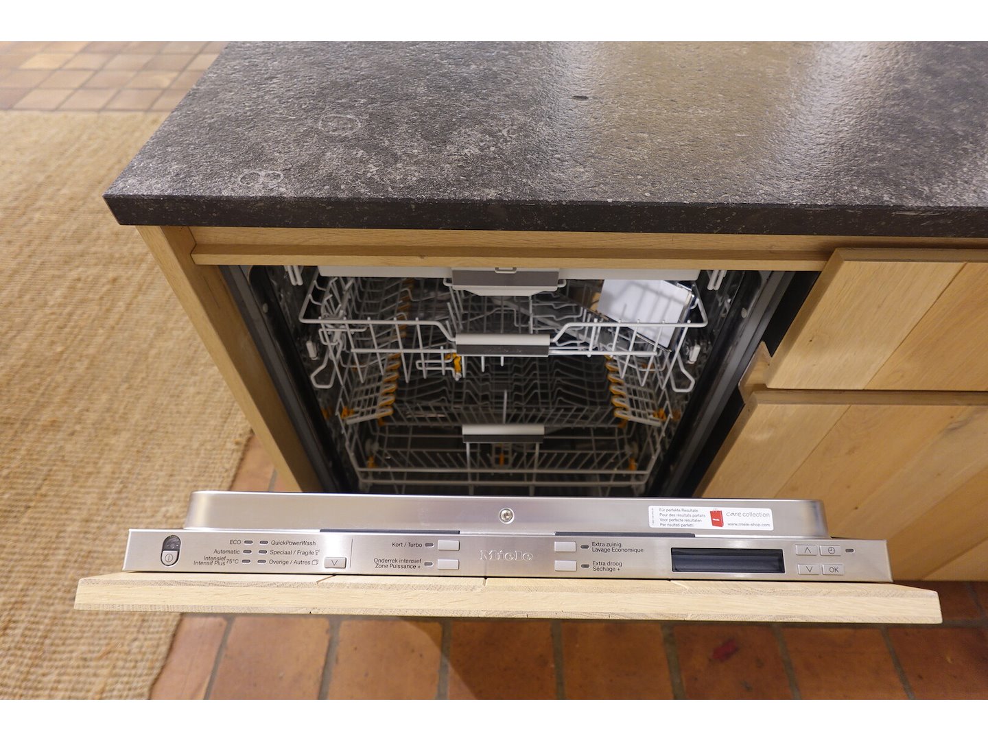 Bestaande uit keukeneiland (3020x1020x930), wandkast (3000x720x2350), toestellen (koelkast, kookplaat en vaatwasmachine Miele)