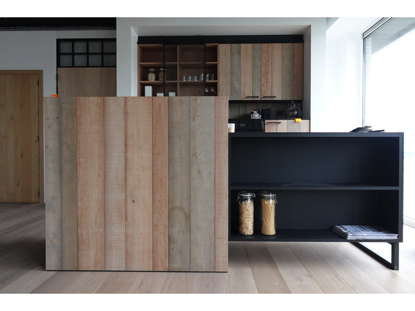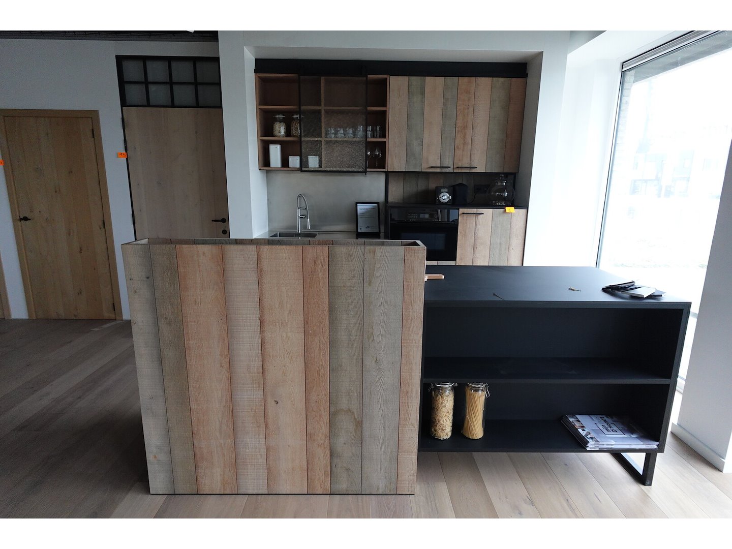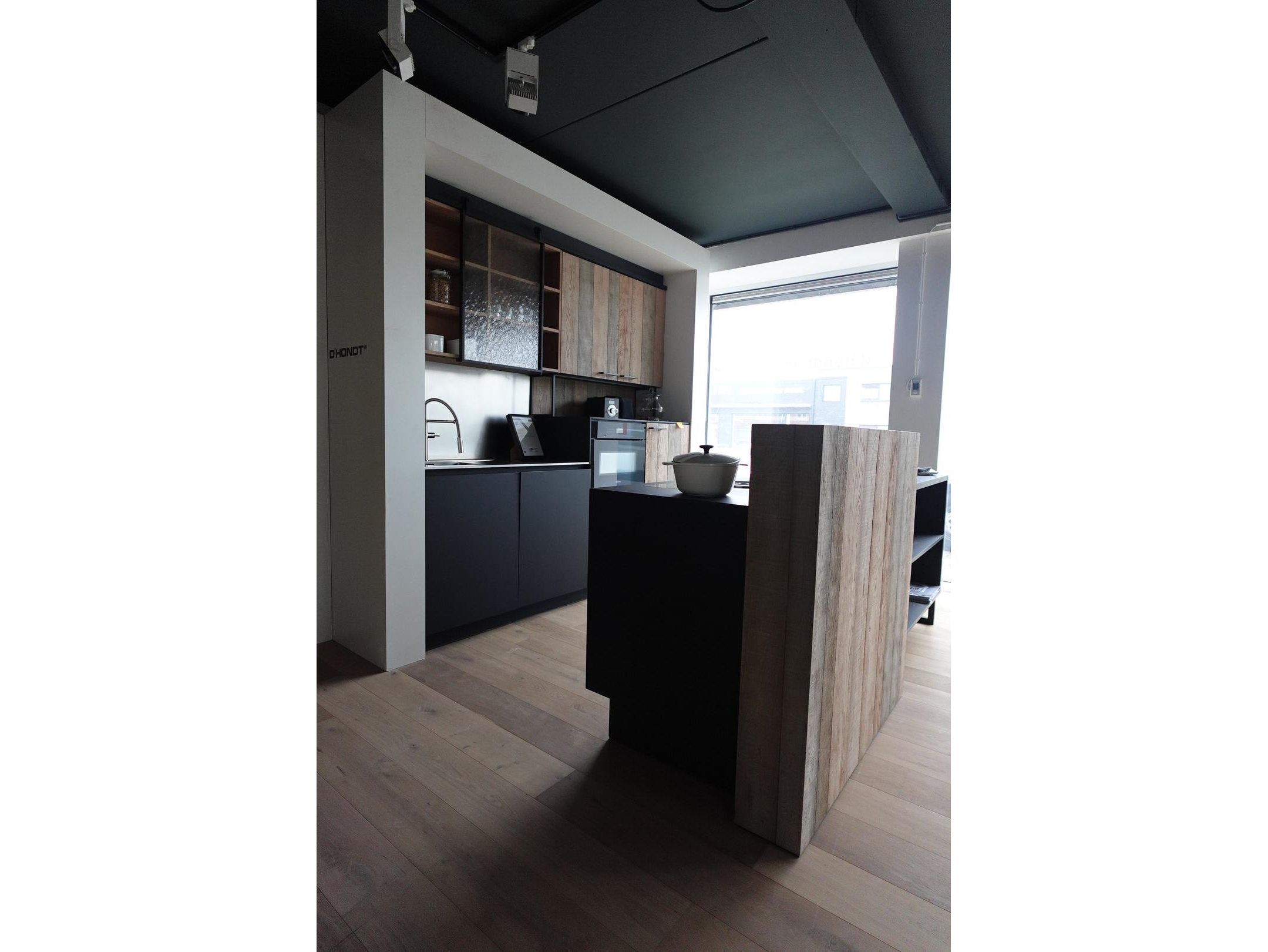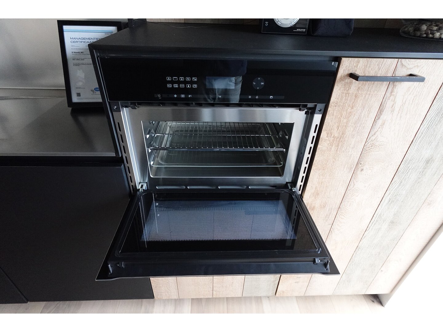 Bestaande uit keukeneiland 2400x850x1200, wandkast 2400x600x2500, toestellen (kookplaat Bora en vaatwasmachine + microgolf Miele)