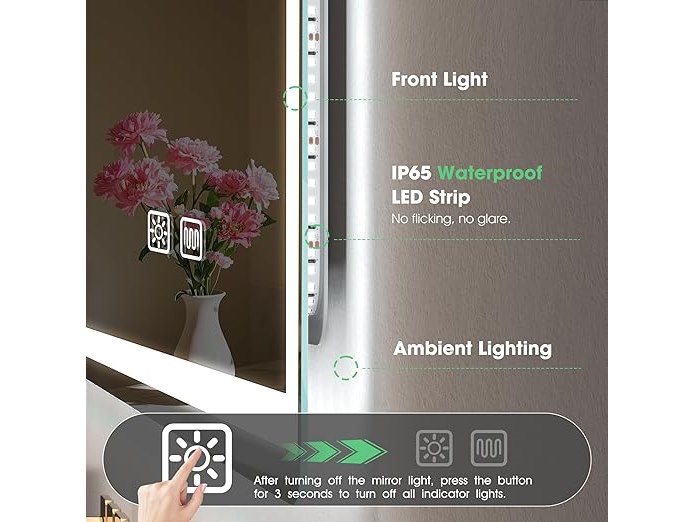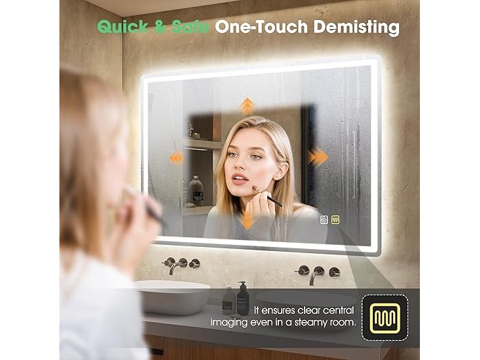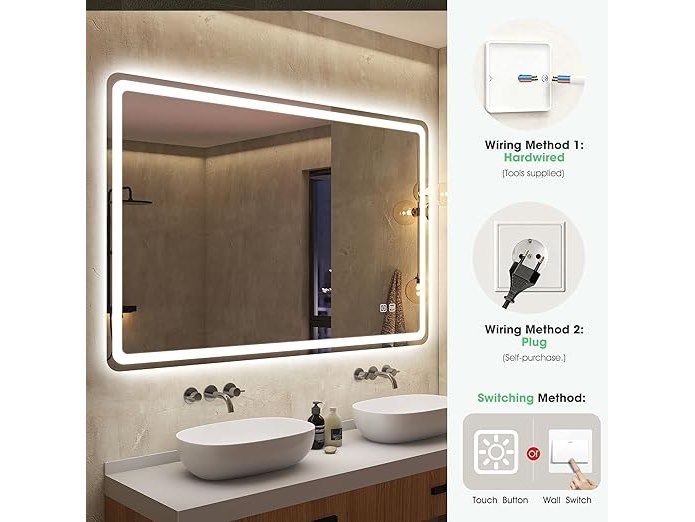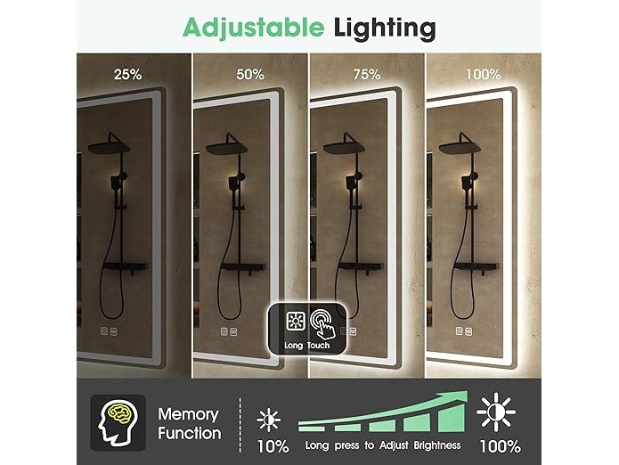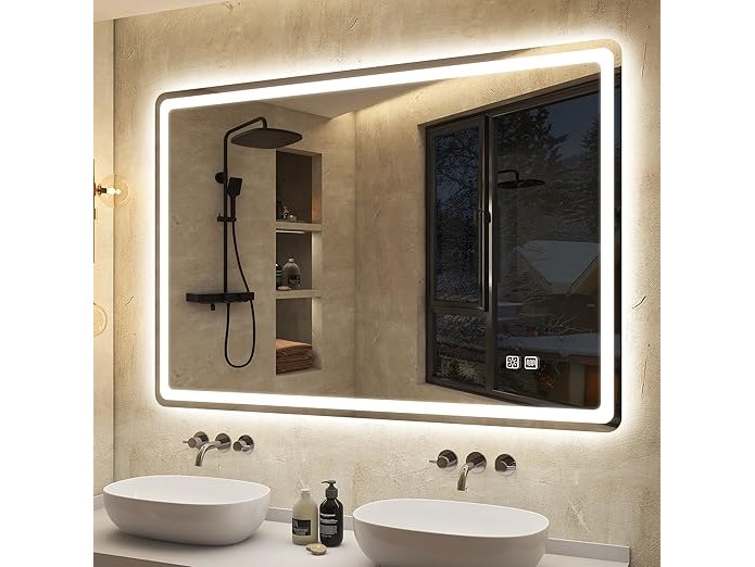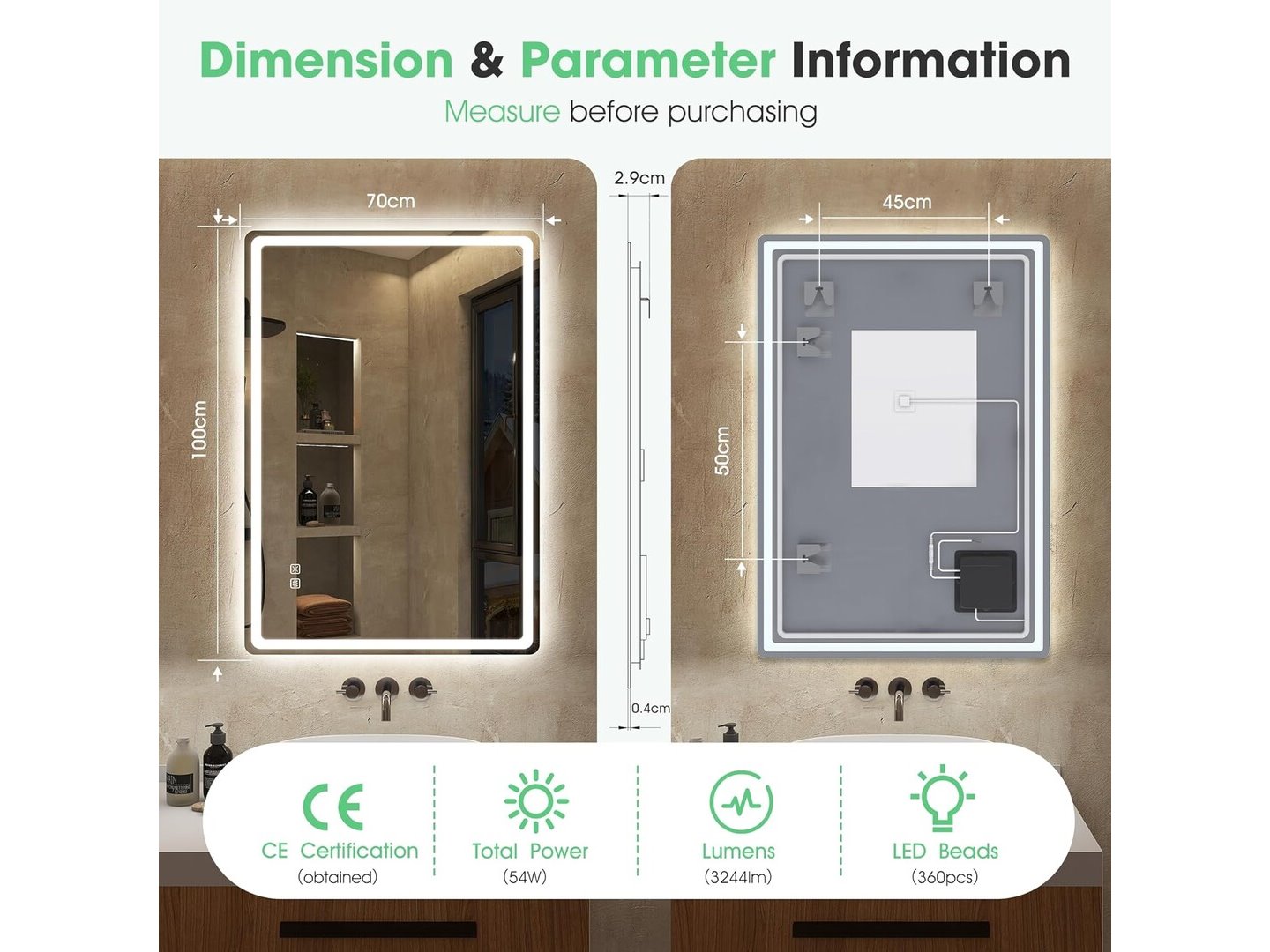 Ongebruikt, volledig, ok, S'bagno Badkamerspiegel van 1000 x 700 mm met verlichting, IP44, met verlichting, 3 kleurtemperaturen (3000 K, 4000 K, 6500 K), dimbaar, led-badkamerspiegel met geheugen, verticaal of horizontaal, B0D4QPB5S9