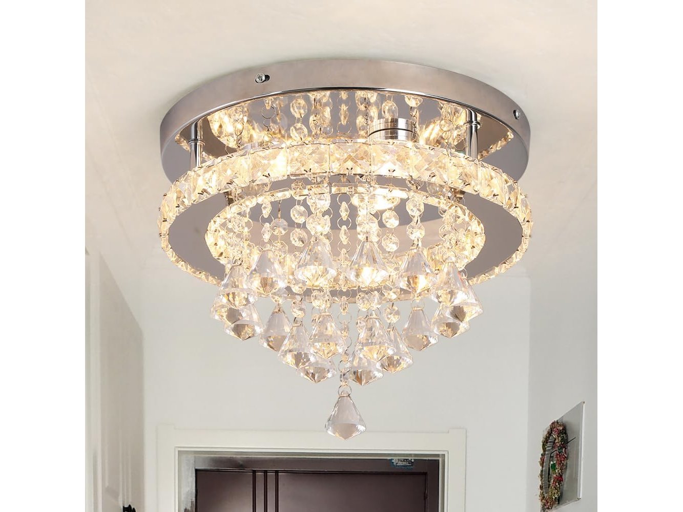 Ongeopend, in seal, Deckrico Kristallen Plafondlamp (30 cm) Moderne LED Kroonluchter Met Dimmer En Afstandsbediening Voor Keuken Slaapkamer Hal Eetkamer, B0D4LLCRYK