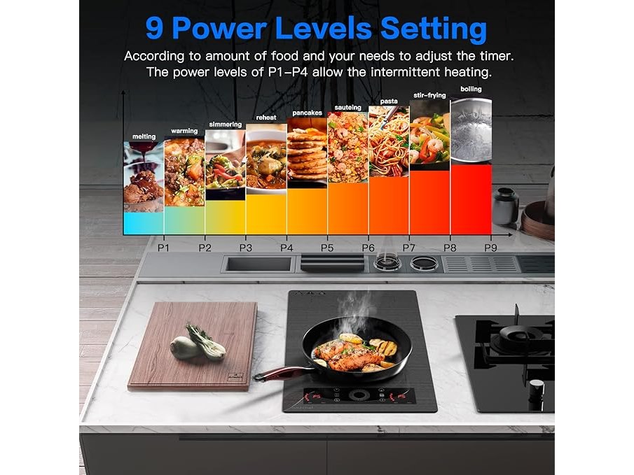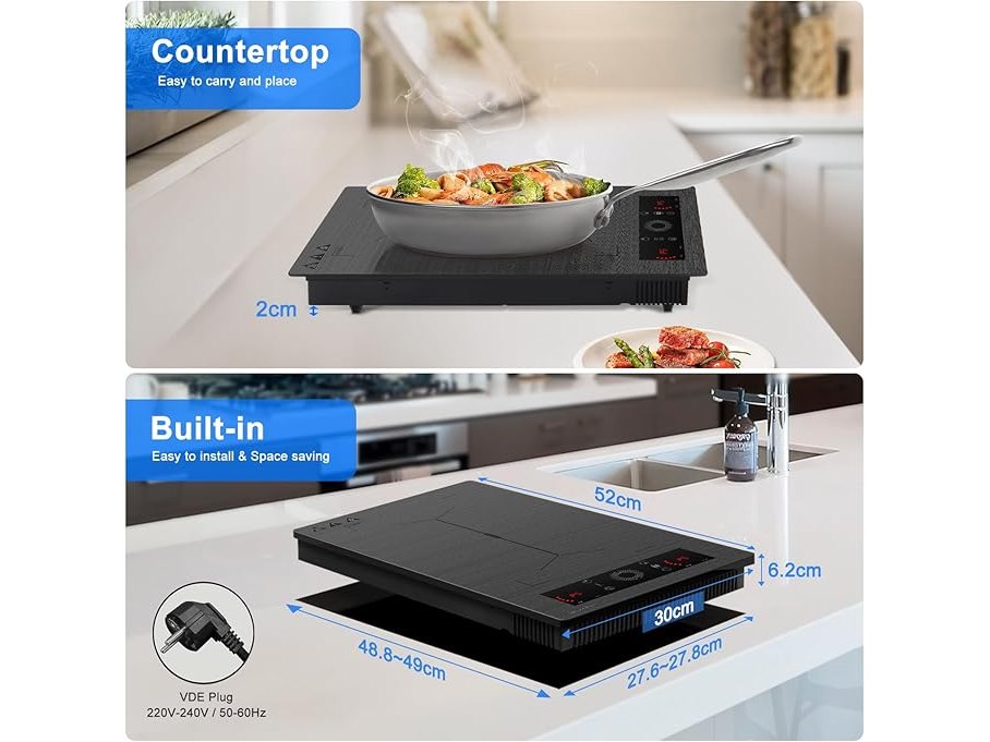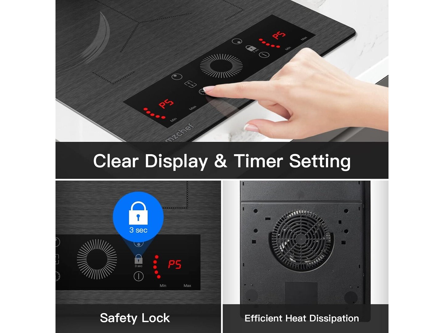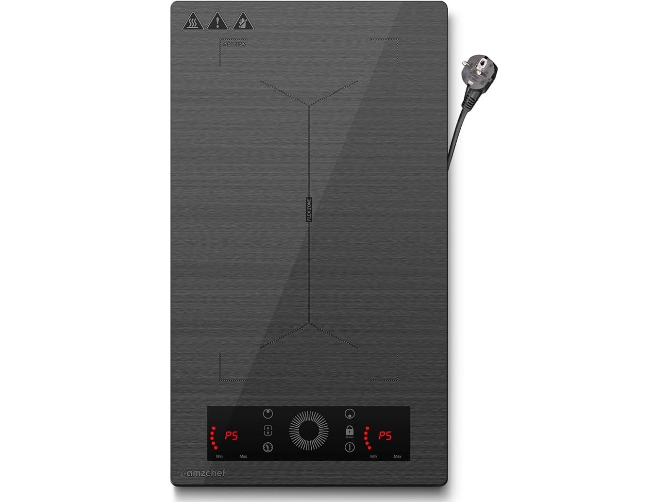 Ongebruikt, getest en werkend, volledig, ok, AMZCHEF Inductiekookplaat met Flexzone, inductiekookplaat, 2 branders met 9 standen, intermitterende verwarming, sloten en veiligheidstimer, touch-slide-bediening, 3300 W, grijs,B09CYNZC1K