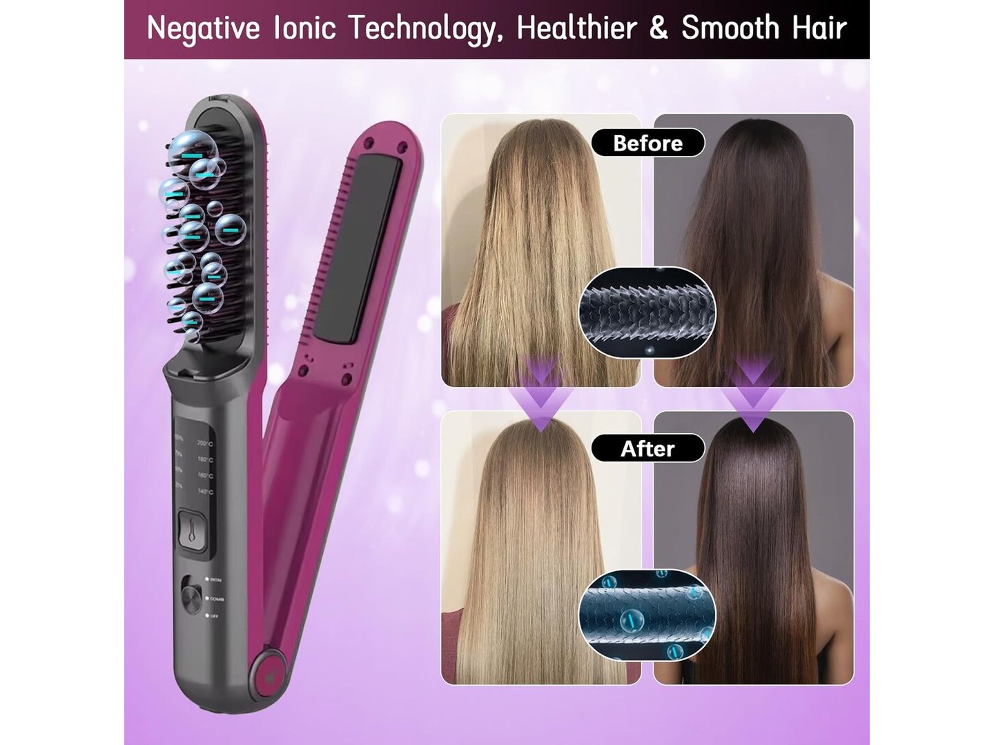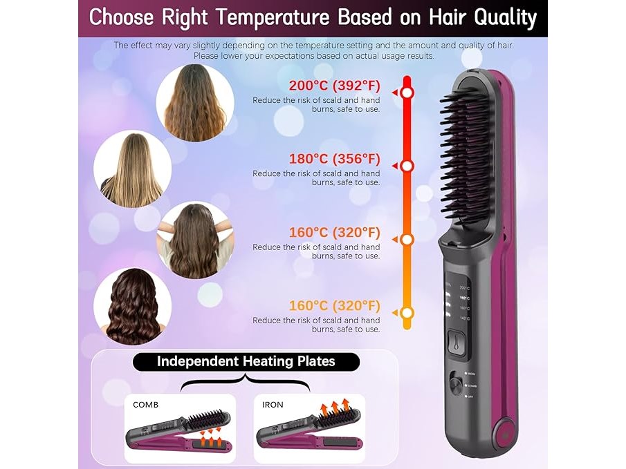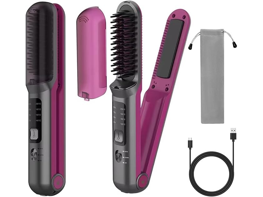 Ongebruikt, getest en werkend, volledig, ok, Liropau 2-in-1 Draadloze stijltang, draadloze stijlborstel en draadloze stijltang, mini-stijlborstel, draagbare stijlborstel, type C, oplaadbare stijlborstel, 140-200 °C, snel opwarmen, B0D474M7NK