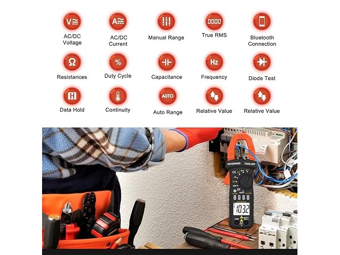 Ongeopend, Digitale klemmeter, GR-7200C-APP Automatisch rangschikken DC AC Amp Meter TRMS 4000telt,Bluetooth Verbinding maken voor voltversterkers Ohm Temp Meting,Continuïteit Capaciteit Weerstand Frequentie Diode Test, B0B96NY88P