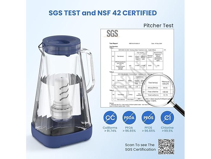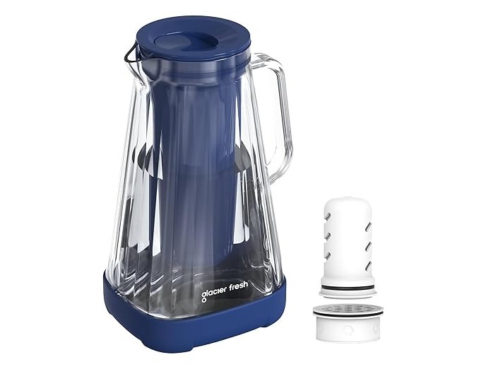 Ongeopend, ok, GLACIER FRESH Glazen waterfilterkan, 1 x actieve kool + 1 x ultrafiltratiefilter, vermindert chloor, fluoride, kalkaanslag, zware metalen zoals lood, koper, blauw, B0CZDDJ2LL