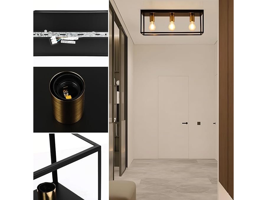 Ongeopend, in seal, Forcoso Plafondlamp zwart 3-lamp, plafondlamp E27 modern industrieel met kooi, LED-plafondlamp van metaal voor slaapkamer, woonkamer, keuken, gang, trap, max. 60 W, lampen niet inbegrepen, B0C8T4W1FB
