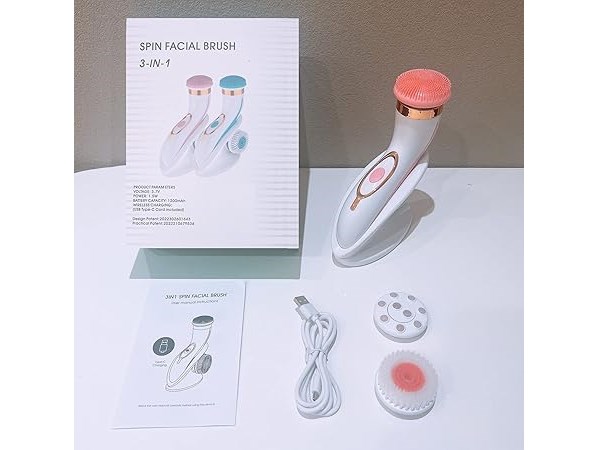Ongeopend, in seal, 3in1 Gezichtsreiniger-rotatieborstel-mit 3 Peeling-Borstelkoppen-USB type C-charging-Waterdicht gezichts-Spa-System-Diepe Peeling, 2 speed-rotatie, IPX5, accu 1200mAh Roze, B0BPTFH5Y6