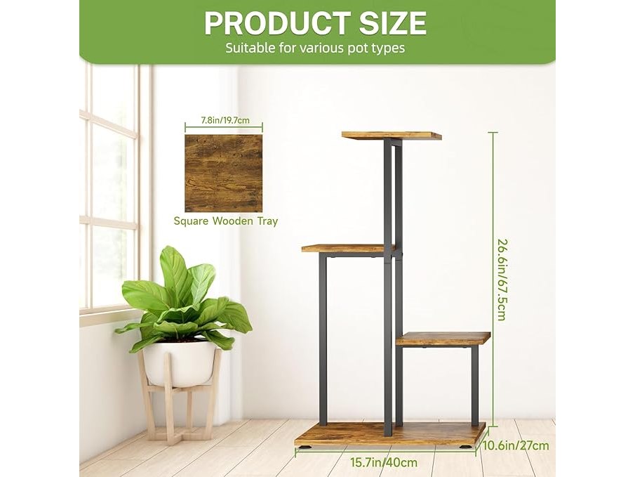 Ongeopend, in seal, iDavosic.ly Metalen plantenstandaard met 4 niveaus, plantenrek, bloemenrek, voor binnen en buiten, bloemenstandaard, voor tuin en balkon, zwart, B0D9V7WN7Q