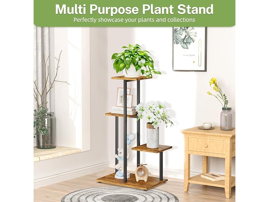 Ongeopend, in seal, iDavosic.ly Metalen plantenstandaard met 4 niveaus, plantenrek, bloemenrek, voor binnen en buiten, bloemenstandaard, voor tuin en balkon, zwart, B0D9V7WN7Q