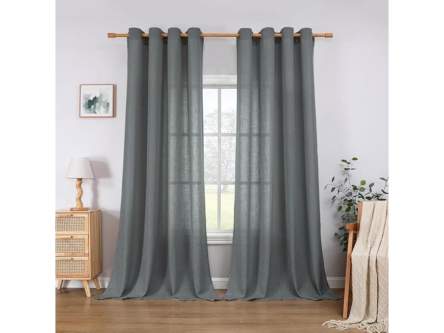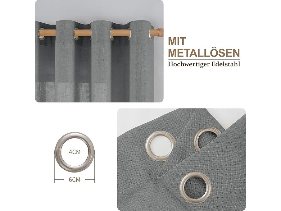 Ongebruikt, ok, CUCRAF Linnen gordijnen met oogjes, landhuisstijl, voile gordijn, half-transparante gordijnen voor slaapkamer, kinderkamer, woonkamer, H 260 x B 140 cm, set van 2, grijs,B0BVFHX996